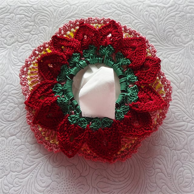 この編み図で、一つの作品でシュシュとポケットティッシュケースの二種類製作できます。
