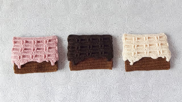 板チョコの形をしたかぎ針で編むポケットティッシュケースの作り方を掲載した