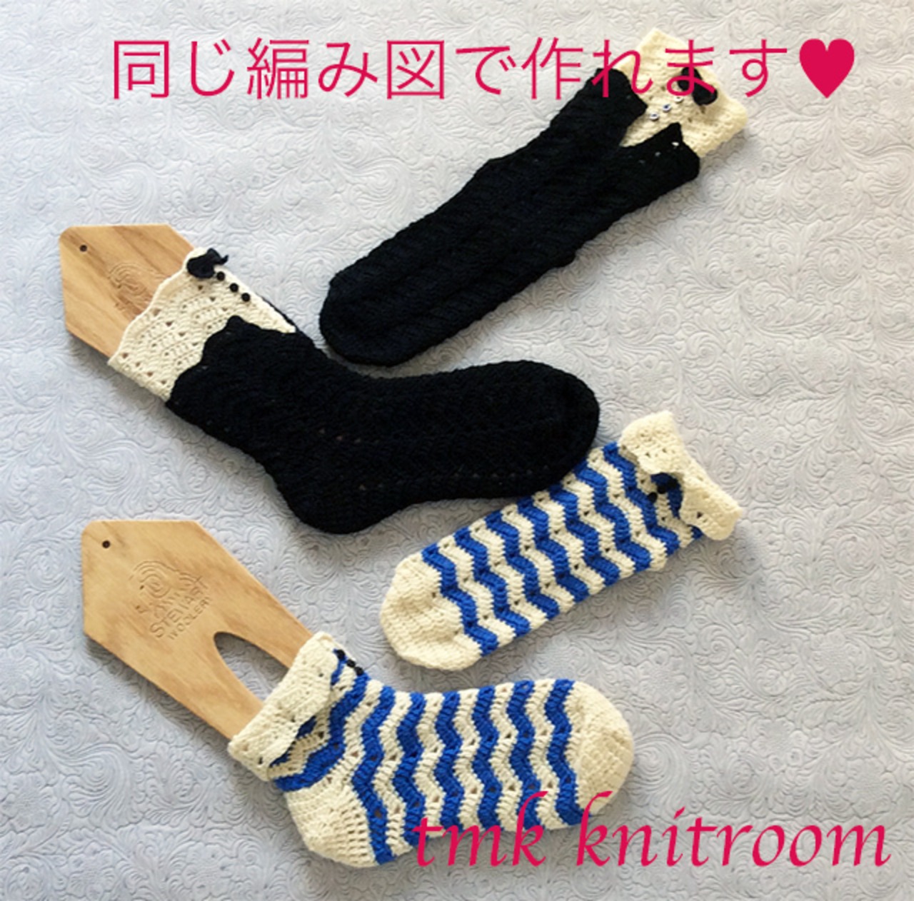 同じ編み図で「マリンシャツ風ソックス」も出来ますのでこちらも是非楽しんでくださいね。