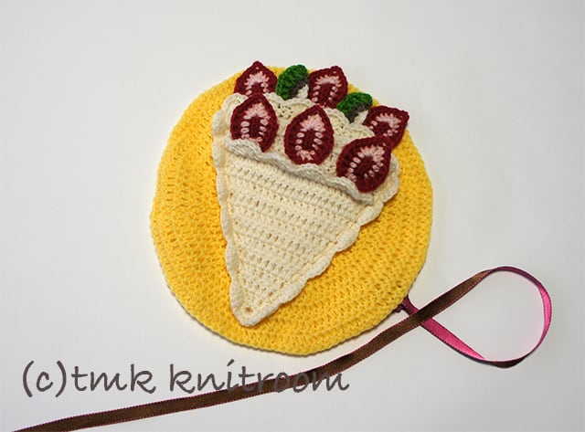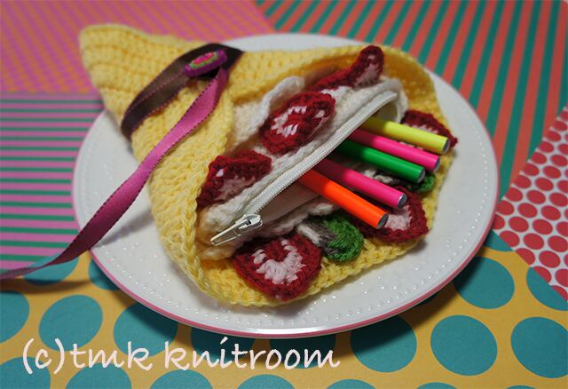クレープの形をしたかぎ針で編むポーチの作り方を掲載した