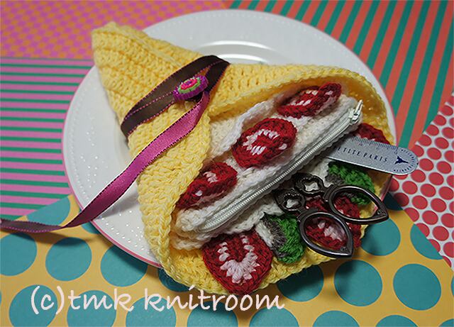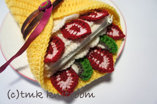 クレープの皮をそっと開くとクリームに包まれたファスナーポーチ♪