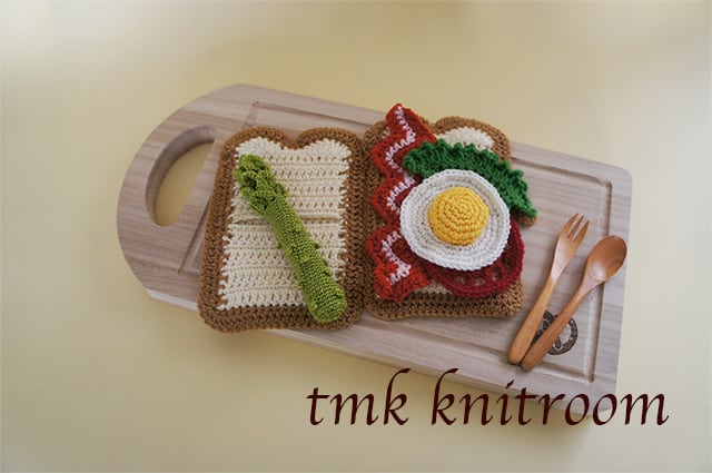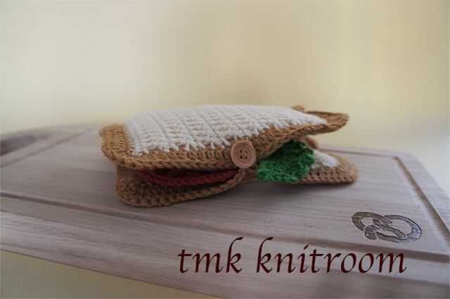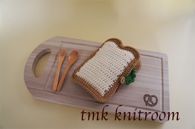 サンドウィッチの形をしたかぎ針で編むポーチの作り方を掲載した