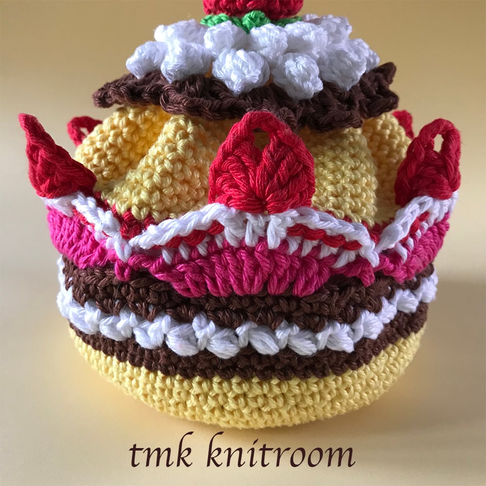 かぎ針で編むカップケーキの形をしたポーチの作り方を掲載した