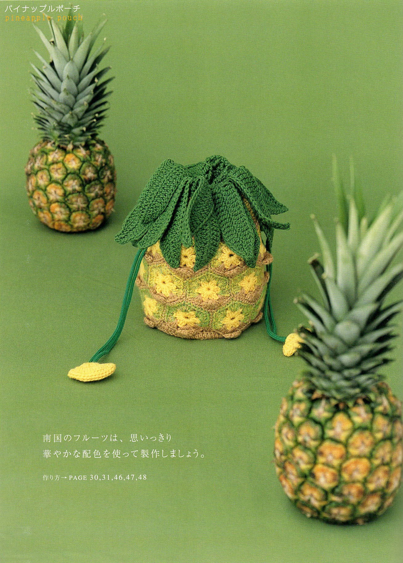 かぎ針で編むパイナップルの形をしたポーチの作り方を掲載した