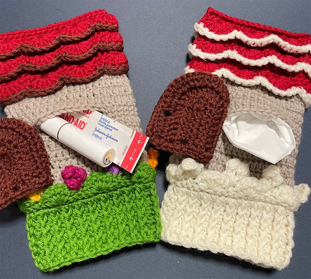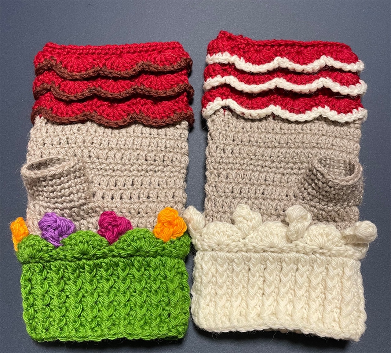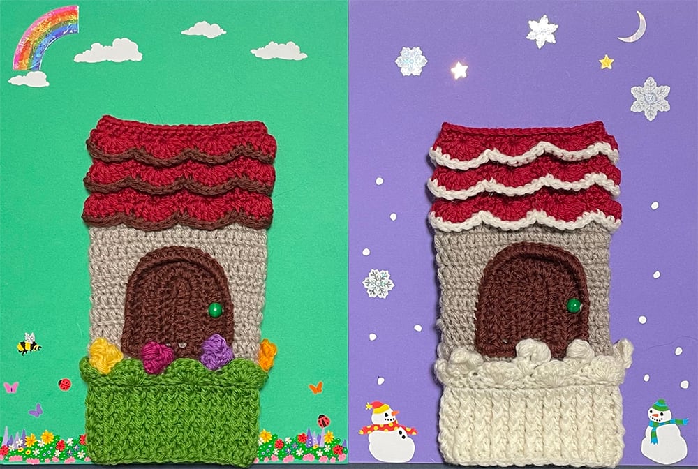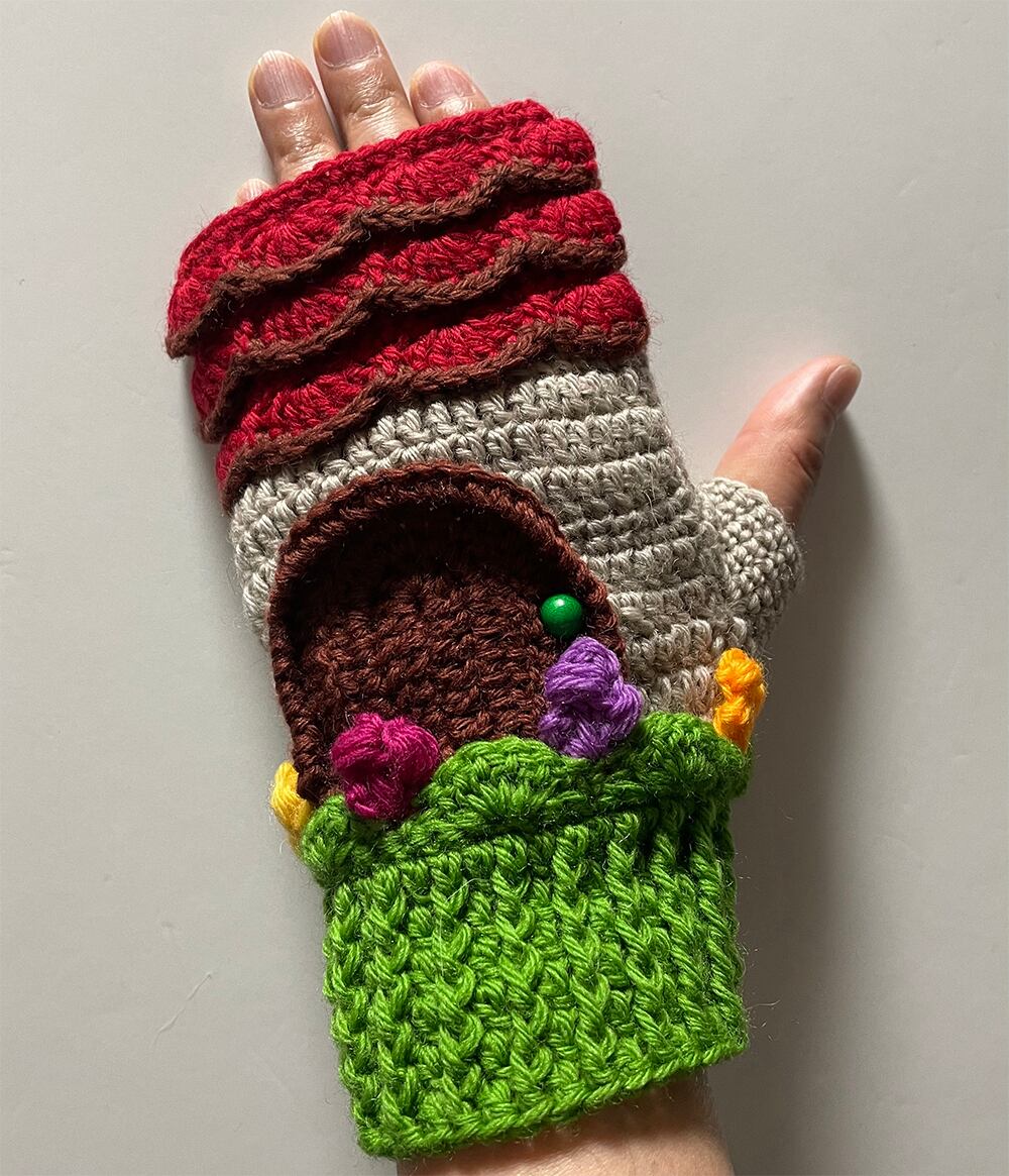 かぎ針で編むおうちの形をしたミトンの作り方を掲載した