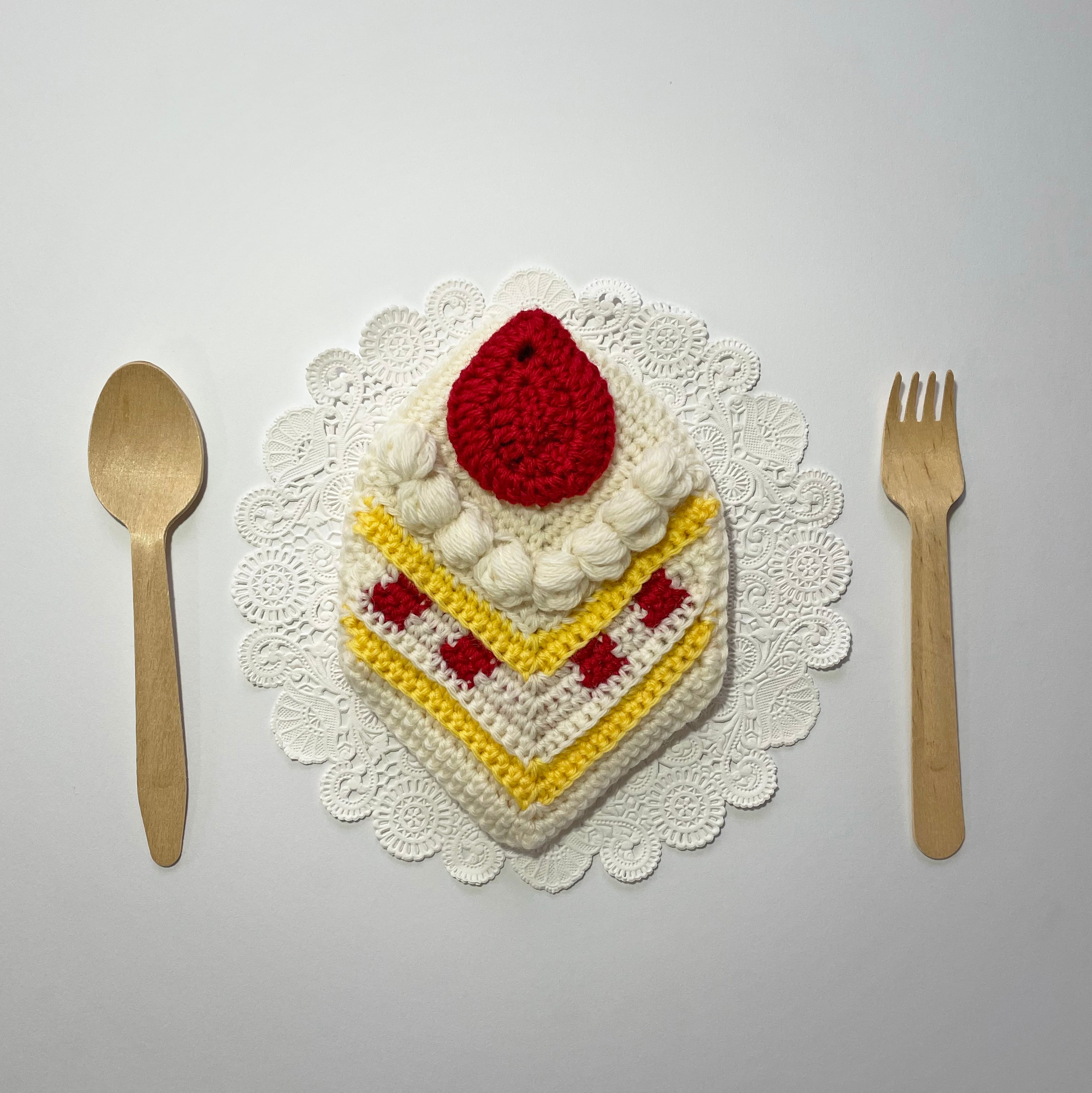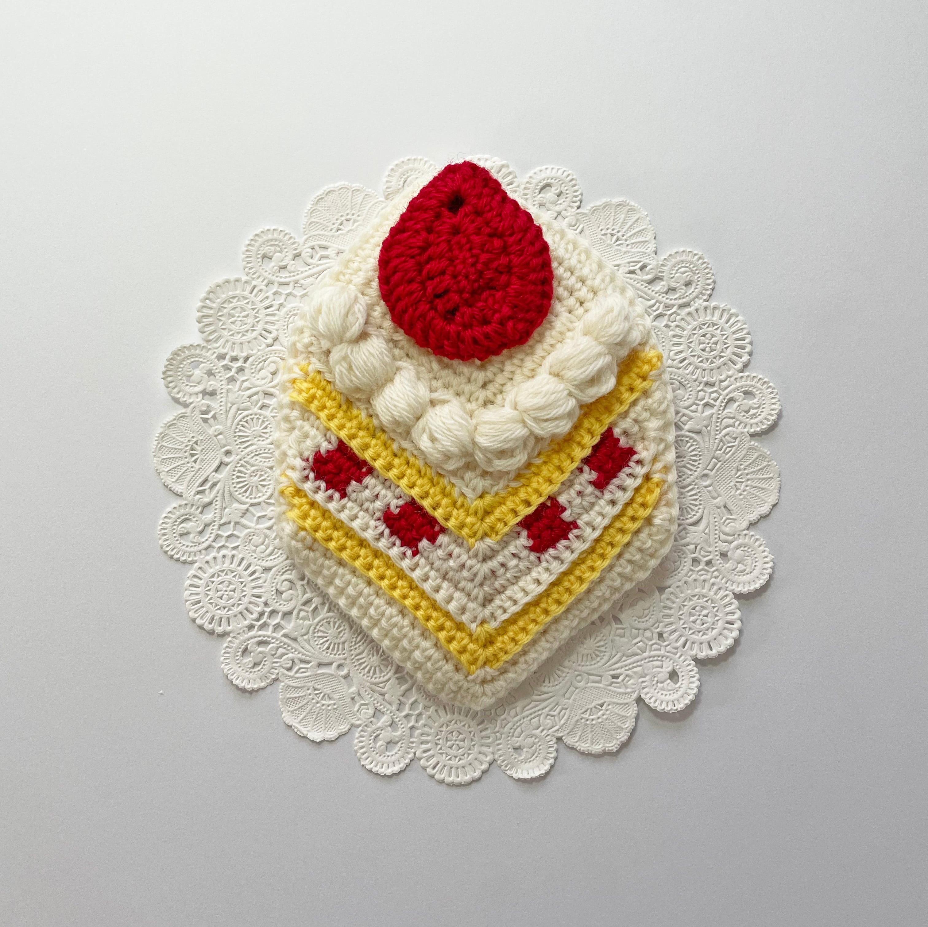 かぎ針で編むショートケーキの形をしたポーチの作り方を掲載した