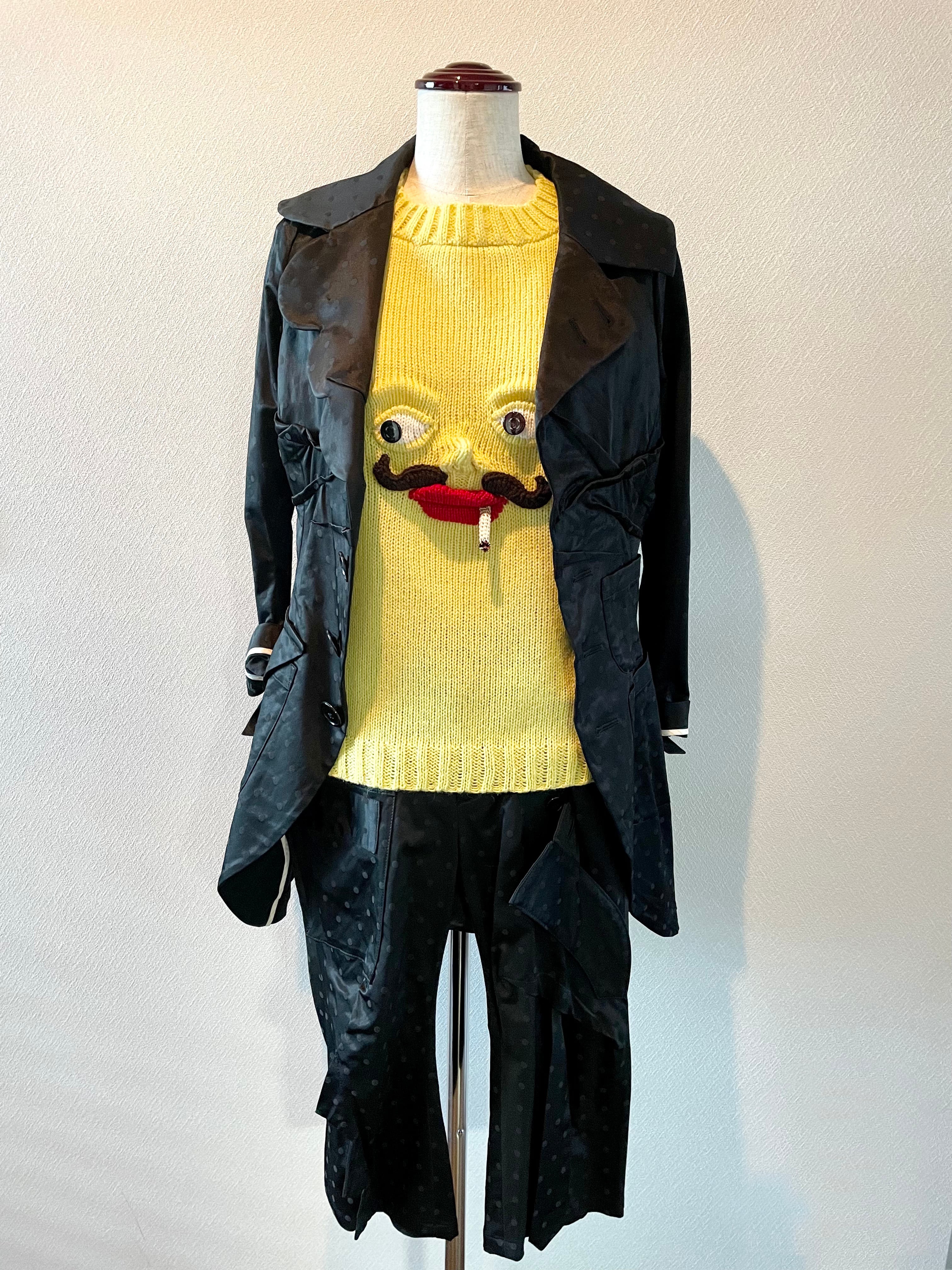顔モチーフニットには、一枚一枚、表情にピッタリとあう目ボタンが違い、その作品にあわせて厳選してお付けしておりますので、ぜひ、目ボタンの美しさも楽しんでいただけたら幸いでございます。