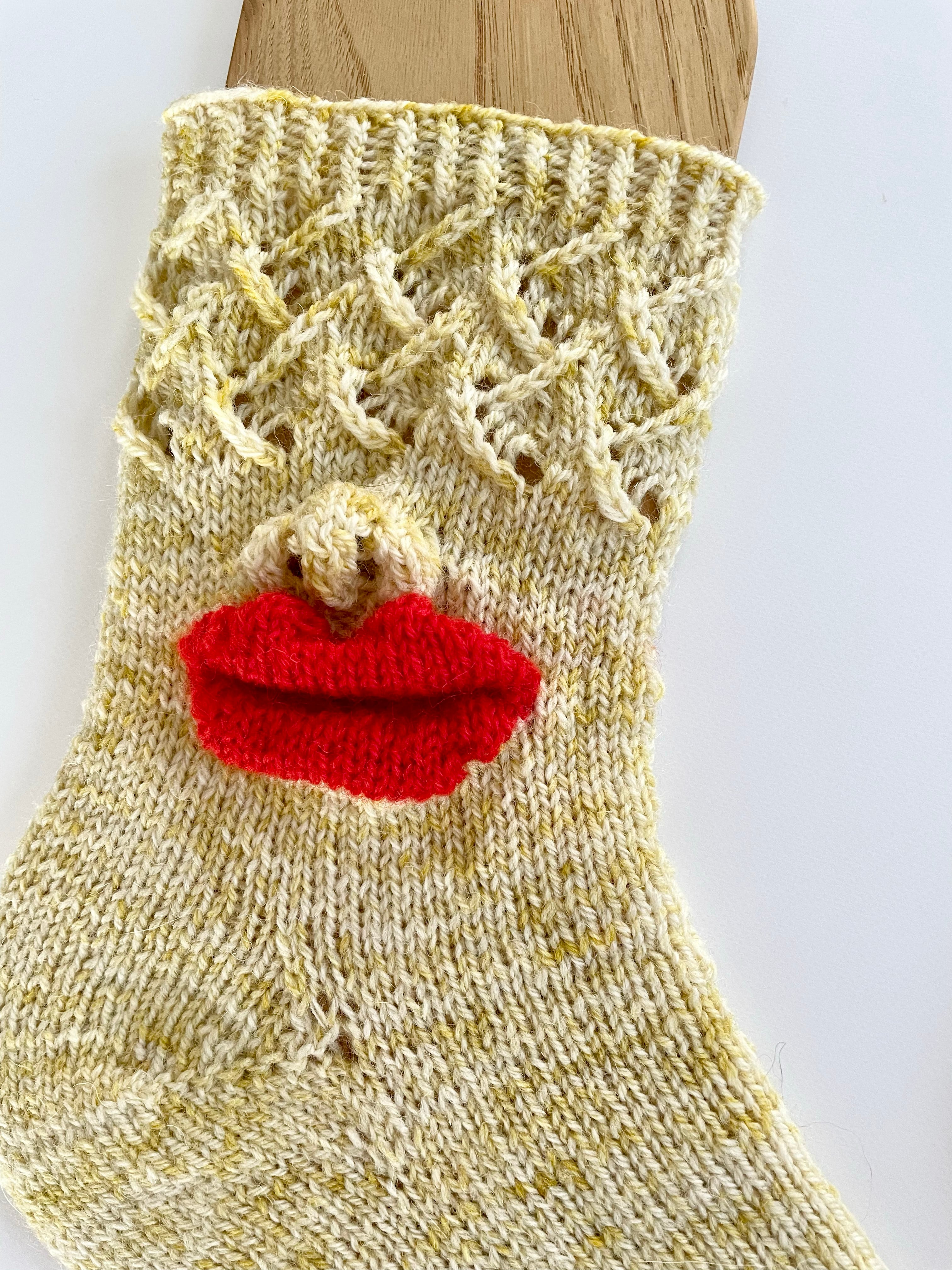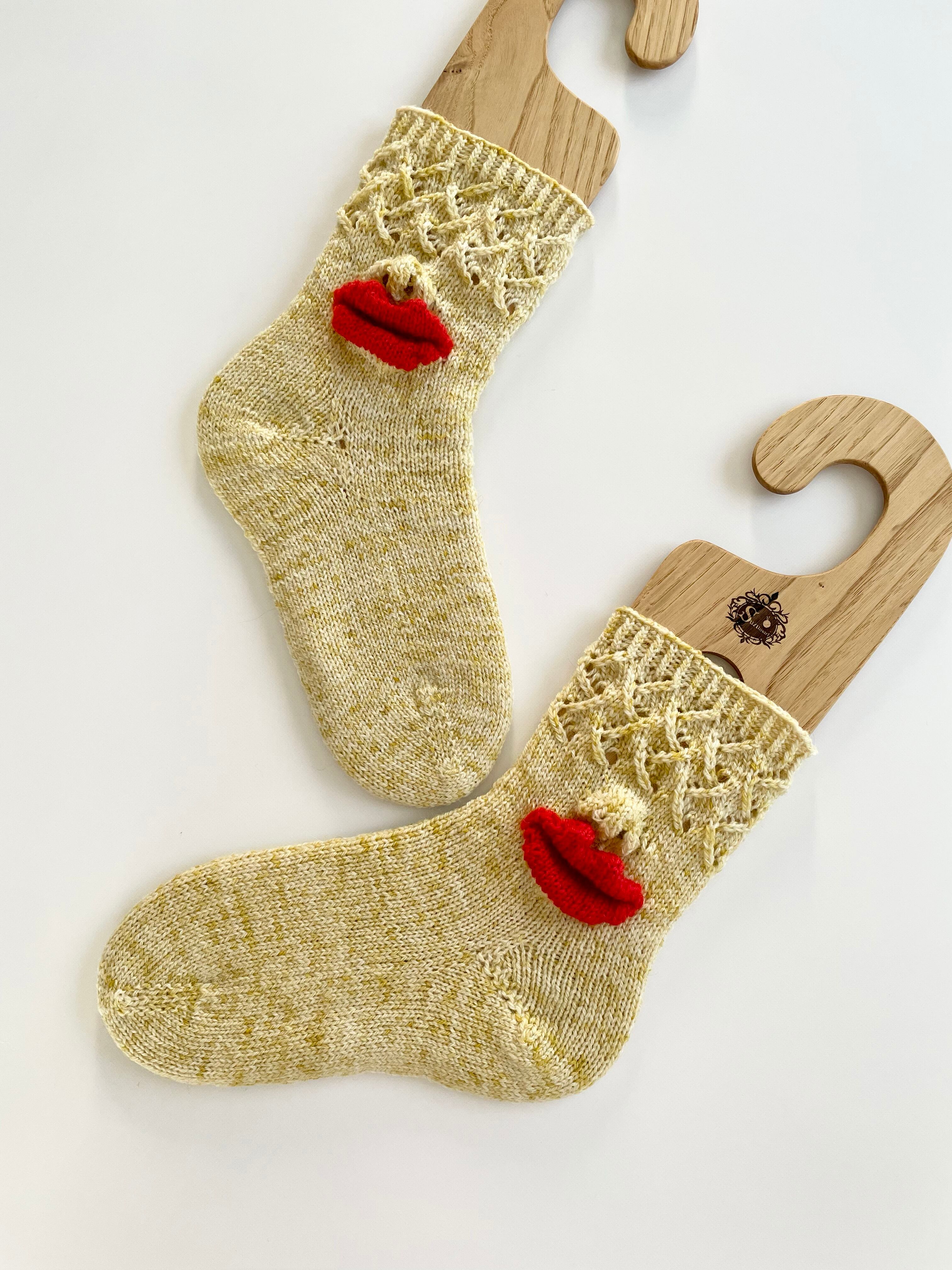 試行錯誤を繰り返しデザインした美しい唇と鼻をソックスに配置しました。