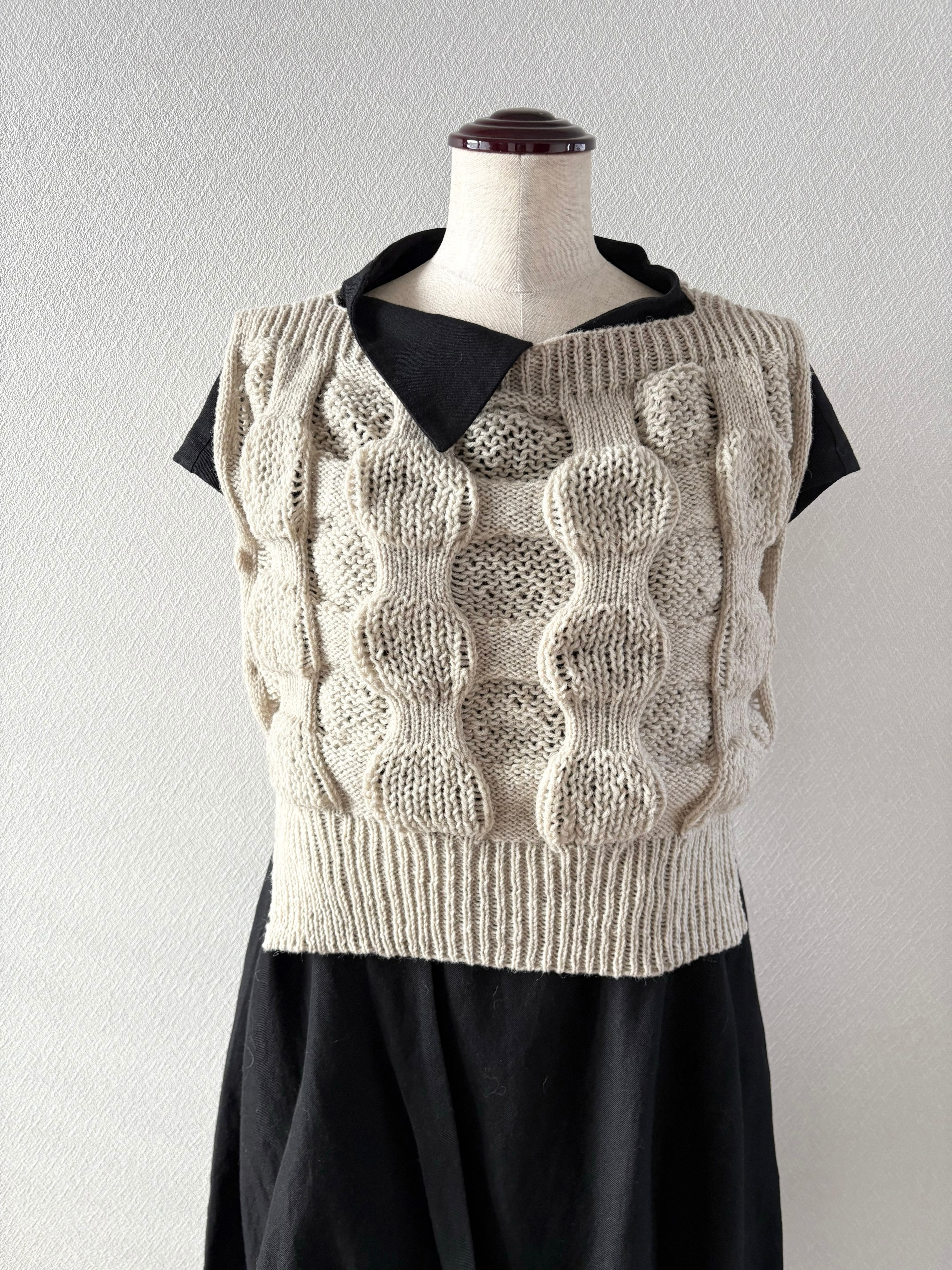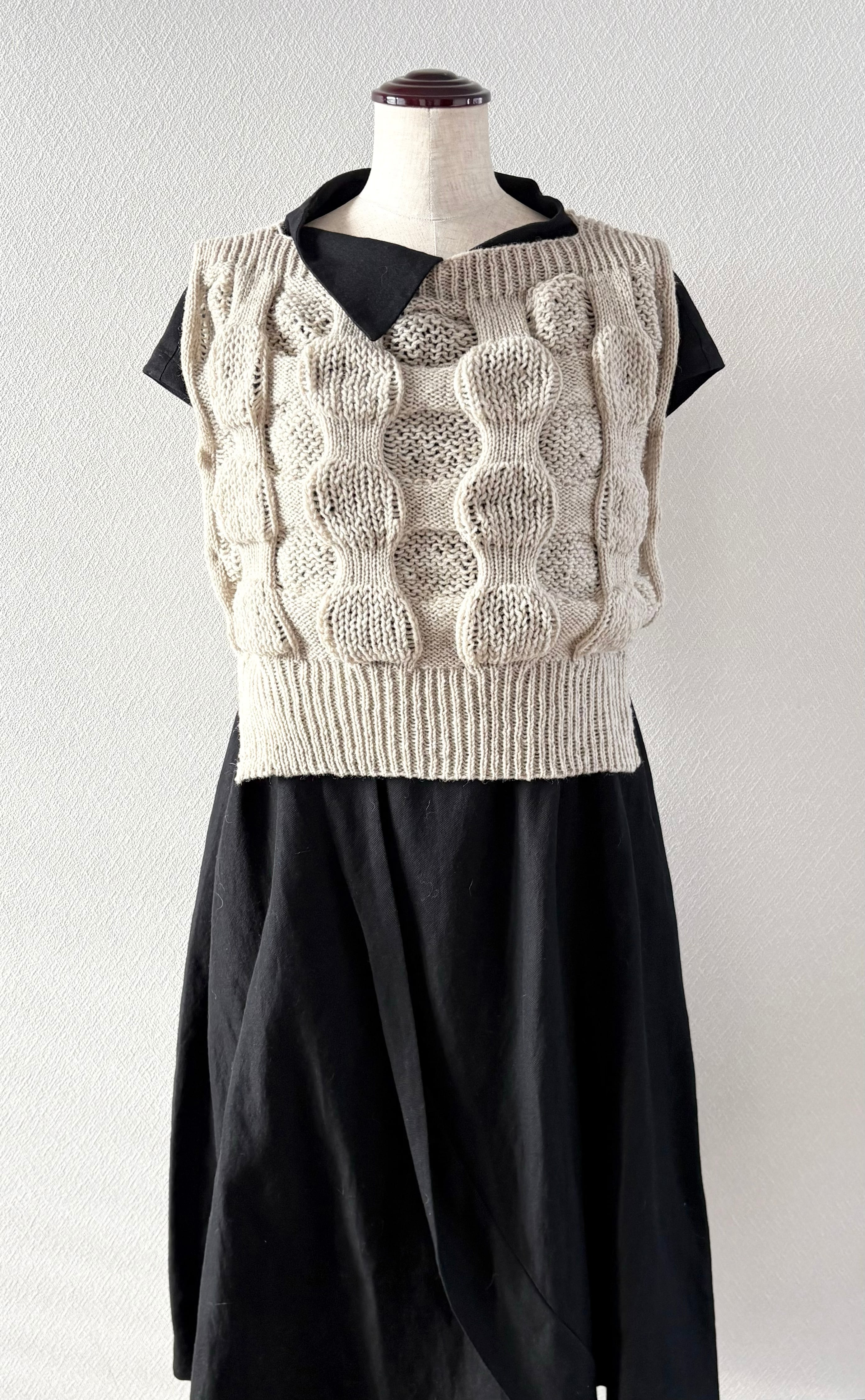 目を落として作る模様編みが新鮮なサイドオープンベストです。